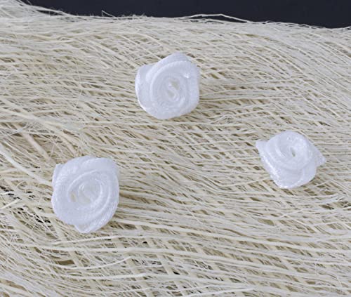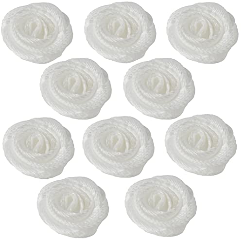 AERZETIX - C60863 - Set di 10 fiori rosa ~6x15mm in raso - nastro personalizzazione decorazione asole matrimonio hobby creativo merceria cucito abiti artificiali - colore bianco