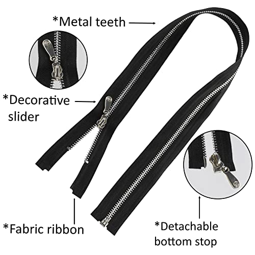 AERZETIX - C61478 - Cerniera lampo separabile N°3 50cm in metallo con tiretto decorativo - colore: nero - cursore jeans gilet pelletteria cucito abbigliamento pantaloni merceria