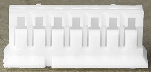 Dimensioni: Connettore femmina a 7 pin senza spille. Larghezza: 15.8mm. Altezza: 4.5mm. Lunghezza: 7mm. Temperatura di esercizio: -25...85°C. Peso unitario: 0.184 g. Numero di file: 1. Passo del pin = 2mm. Materiale: plastico. Colore: bianco