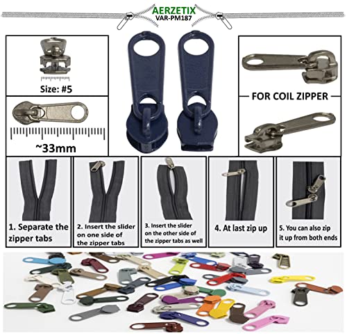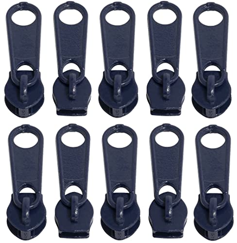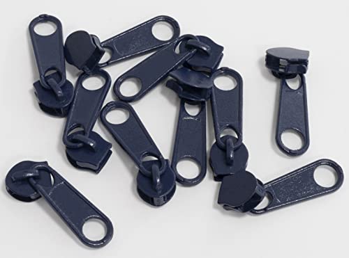AERZETIX - C62811 - Set di 10 cursori N°5 non bloccabile per cerniera lampo a spirale - colore: blu scuro - in metallo - per gonna vestito pelletteria confezione cuscino