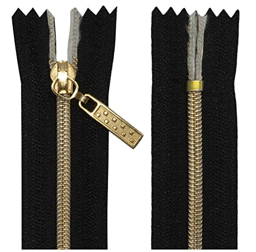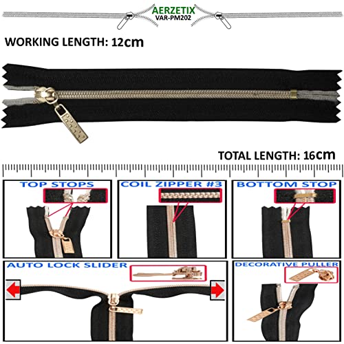 Aerzetix - C63661 - Set di 10 Cerniere Lampo N°3 12cm Non separabili - Rete/Scorrevole Dorato in Metallo - tiretto Decorativo - Colore Nero - cursore Spirale Abbigliamento Cucito Pantaloni merceria