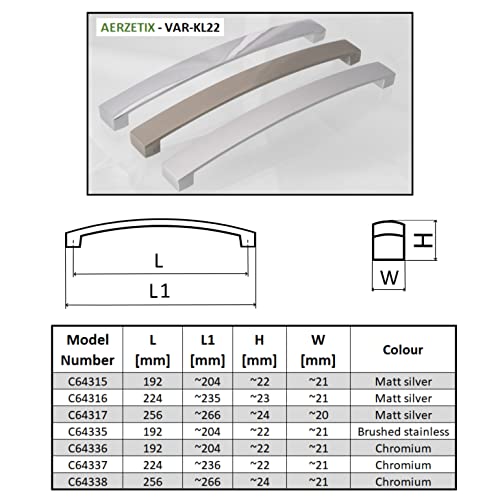 Aerzetix - C64316 - Set di 5 maniglie per mobili interasse 224mm - porte armadio cassetto decorazione interno arredamento cucina soggiorno assemblaggio - in metallo - finitura: argento opaco