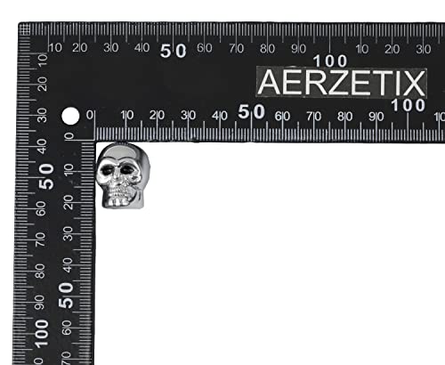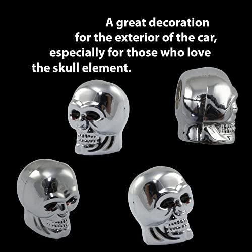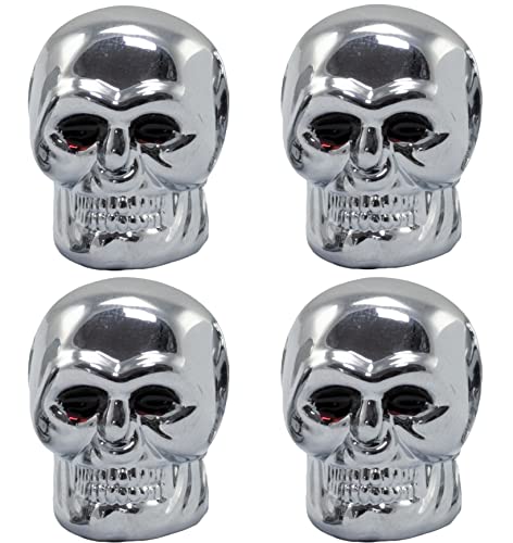 AERZETIX - C64518 - Set di 4 Cappucci/tappi delle valvola pneumatici auto - teschio - colore argento - in alluminio - ruote accessori tuning auto-moto decorazione camion SUV veicolo