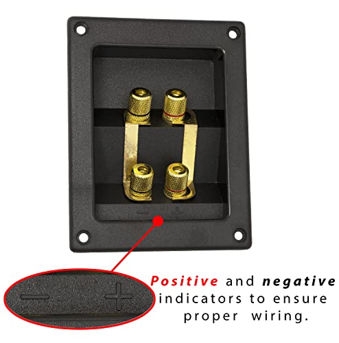 Questa morsettiera da incasso in plastica a 4 vie è progettata per essere montata sulla cassa dell'altoparlante, sul subwoofer o sull'involucro nella parte posteriore o laterale. È una parte essenziale di un sistema audio che è responsabile dell'alimentazione dei cavi degli altoparlanti per la distribuzione armoniosa del suono
