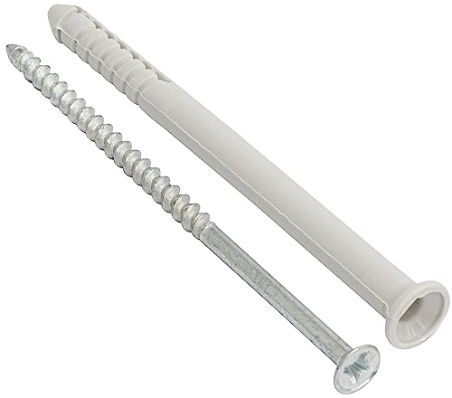 Dimensioni tassello: Lunghezza: 81mm. Diametro: Ø6mm. Materiale: plastico. Colore: grigio. Corpo a coste lunghe - per una forte tenuta e resistenza allo strappo. Dimensioni della vite: Lunghezza: 82mm. Diametro: Ø3.5mm. Materiale: acciaio zincato. Peso: 5.75 g. Suggerimento: la lunghezza della vite richiesta si ottiene dalla lunghezza del tassello + lo spessore della parte assemblata + 1 x il diametro della vite. La scelta di una lunghezza maggiore aumenterà la sicurezza della fissazione