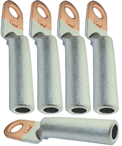 AERZETIX - Set di 5 - Capicorda terminali elettrici bimetallici tubolari - occhiello - Ø8mm - Non isolato - per conduttore 16mm² - Connettore cavi elettrici - serraggio - Colore argento/rame - C44956