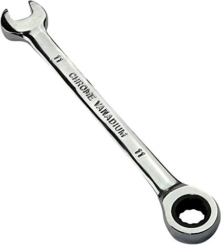 AERZETIX - Chiave combinata manuale aperta/classica 11mm - chiave a cricchetto 11mm Anello/occhiello 12 lati - Metrica - CR-V - serraggio/assemblaggio - Manico diritto lucidato - DIN 3113 - C45516