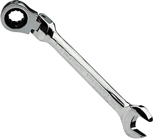 AERZETIX - Chiave piatta combinata aperta/classica 12mm - Chiave a cricchetto con testa articolata/flessibile 12mm Anello 12 lati - Non reversibile/Metrica - CR-V - Manico diritto lucidoto - C45599