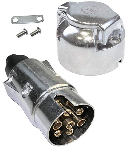 Set di 2 connettori - maschio e femmina - in metallo, che stabiliscono un collegamento sicuro tra il tuo veicolo e il rimorchio. Si adatta alla maggior parte delle auto da 12V, automobili, camion, roulotte, minibus e altri veicoli. Sono progettati per rimorchi a 7 perni con standard europeo