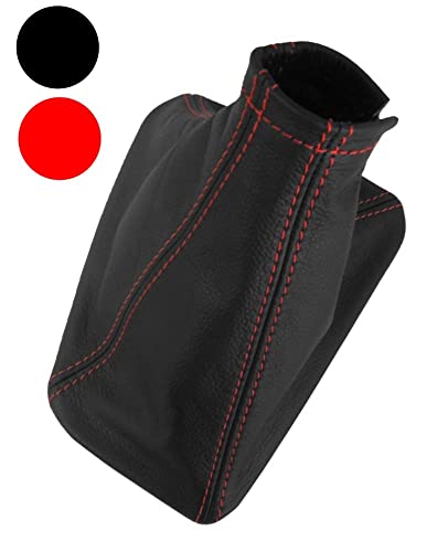 AERZETIX - Cuffia per Leva del Cambio - 100% Vera Pelle - Colore della Pelle: Nero - Colore delle Cuciture: Rosso