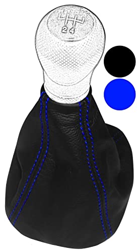 AERZETIX - Cuffia per Leva del Cambio - 100% Vera Pelle - Colore della Pelle: Nero - Colore delle Cuciture: Blu