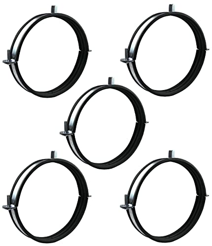 Set di 5 fascette di fissaggio antivibranti per tubo Ø180mm, con guarnizione in gomma, 2 viti di montaggio e un dado a doppia filettatura, che vi permetterà di fissare saldamente in posizione il condotto dell'aria. Questa fascetta di fissaggio impedisce lo spostamento tra il tubo e l'installazione, mantiene il raccordo in posizione e offre la possibilità di molteplici usi