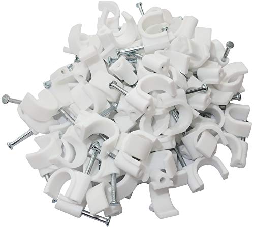 Aerzetix - Fermacavo con chiodo per cavo tondo 10 mm bianca 100pz.