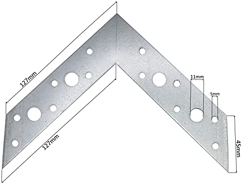 Dimensioni: Lunghezza piastra: 127mm. Altezza piastra: 127mm. Larghezza piastra: 32mm. Sulla piastra di montaggio avrete 12 piccole aperture da 5mm e 4 grandi aperture da 11.5mm. Spessore: 2mm. Peso unitario: 113.708 g. Materiale: acciaio zincato a caldo. Nota: la staffa di fissaggio garantirà non solo la protezione dall'umidità del suolo, ma anche la stabilità e la robustezza di strutture come: gazebo, tettoie in legno