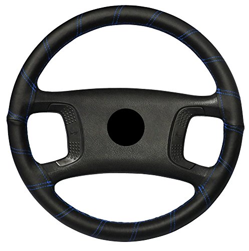 Aerzetix - Rivestimento coprivolante in Vera Pelle, da Cucire, Colore Nero Cuciture diagonali Blu. Taglia: M.
