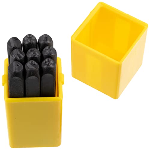 Questo punzone per stampaggio è un'asta incisa con un numero. Questa scatola che contiene 9 pezzi da 0 a 8 ti servirà perfettamente per incidere numeri su un oggetto con il colpo di un martello. Il numero è visibile su ogni punzone per facilitarne l'individuazione. È anche un set di strumenti da avere in garage, in officina o anche nella cassetta degli attrezzi di qualsiasi tuttofare o professionista. Attenzione: il numero 6 è usato come 9