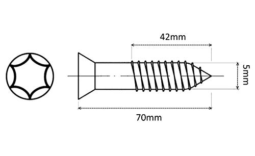 Aerzetix - 50 viti per legno a testa conica, filettatura parziale 5/70 mm, acciaio zincato, impronta Torx C41573