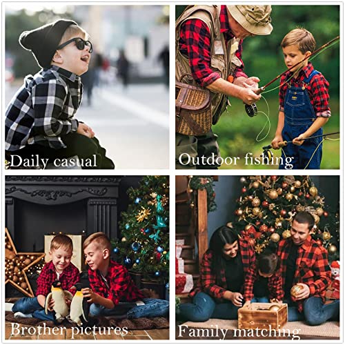 Aeslech Men & Little Big Boys Camicia in flanella scozzese con bottoni e bottoni, E004 Nero Bianco, S