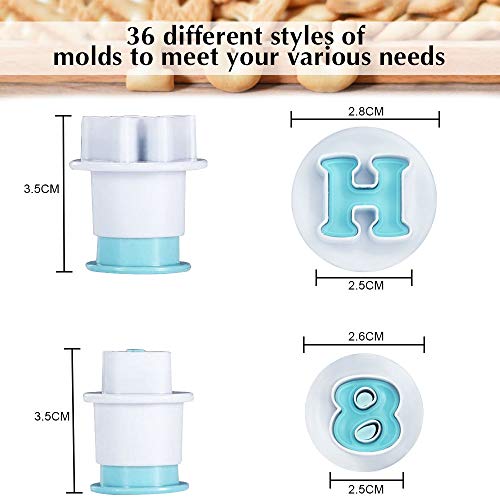 [Migliore combinazione di lettere e numeri] Il nostro kit di taglialettere contiene lettere e numeri, che includono 26 lettere maiuscole dalla A alla Z e numeri arabi da 0 a 9. Puoi scrivere qualsiasi parola o digitale. Nel set di lettere, il diametro di ogni lettera e numero è fissato a 2,8 cm e l'altezza è di 3,5 cm, il che è molto adatto per regali e decorazioni per torte.