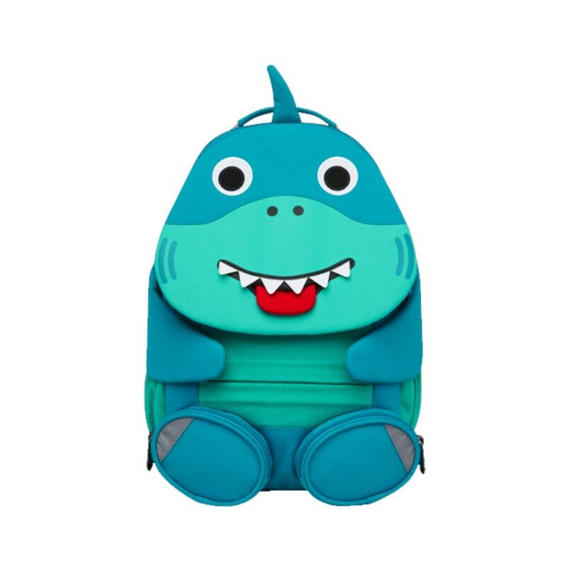 Affenzahn Zaino Asilo Grande Amico Squalo . Bellissimo zainetto Affenzahn curato nei minimi dettagli dai colori e le sembianze di un simpatico animaletto. Lo zainetto Affenzahn diventerà un fedele compagno per il tuo bambino! All'asilo e nel tempo libero, per poter vivere insieme avventure divertenti ed emozionanti! Dettagli ricamati: tanto amore per il dettaglio! Zainetto di alta qualità con tanti dettagli per aggiungere un tocco di personalità ad ogni faccia Affenzahn Linguetta estraibile: la linguetta estraibile può essere riempita con un nome o altre informazioni, anche una foto! Tasca frontale: spazio in abbondanza. La pancia dello zaino ha molto spazio per cose utili come fazzoletti o pigne. Riflettente: lo zaino è dotato di catarifrangenti che riflettono la luce al buio. Tasche segrete: tesori segreti possono essere custoditi nei “piedini” della borsa nella pratica tasca esterna con zip. Zampette a strappo: i punti adesivi consentono ai bambini di posizionare le sue zampe a