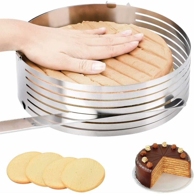 6 strati rendono la torta tagliata e disegnata più sottile e uniformemente stratificata. Consegnato con un pratico anello regolabile per ingrandire o ridurre facilmente le dimensioni dell'anello, puoi tagliare la misura che desideri. 【Multiuso】Adatto per tagliare torte di mousse, torte da forno, pane, biscotti, biscotti, cioccolato o altro. Adatto a casa, hotel, panetteria, ristorante, bar, panetteria, ecc.