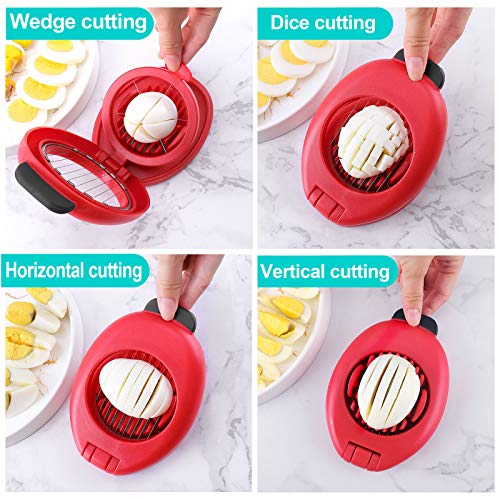 Affettatrice per uova sode, facile da tagliare a fette, cuneo e dadini, robusto corpo in ABS con fili in acciaio inox, piedini antiscivolo, lavabili in lavastoviglie, senza BPA (rosso)