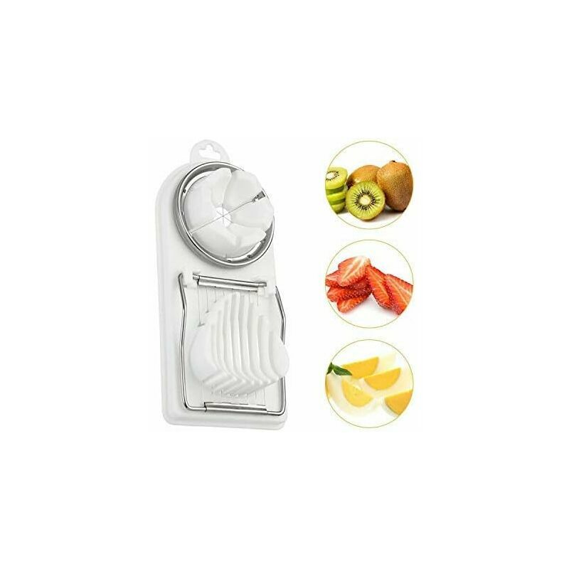 Materiale: acciaio inossidabile + PP Colore bianco Dimensioni: circa 19,7 * 8,8 cm Fornitura: 1 * tagliauovo Uovo di alta qualità Affettatrice - Questa affettatrice per uova è realizzata in resistente acciaio inossidabile + PP ed è realizzata con filo di acciaio inossidabile di alta qualità, base antiscivolo e impugnatura morbida. FACILE DA USARE - Questa affettatrice per uova è veloce e facile da usare. Basta posizionare l'uovo sulla superficie e tirare la maniglia per affettare con precisione. Usa il filo di acciaio inossidabile per tagliare le uova in fette perfette per renderle più delicate e tenere. Due metodi di taglio alternativi - Con questa costruzione, l'uovo può essere tagliato orizzontalmente o in 6 parti uguali. Continua a girare l'uovo per tagliarlo in piccoli pezzi. Facile da pulire: l'affettatrice per uova è lavabile, piccola, non occupa spazio in cucina ed è facile da riporre. Può essere pulito in modo rapido e sicuro in lavastoviglie Con l'affettauova, non solo puoi