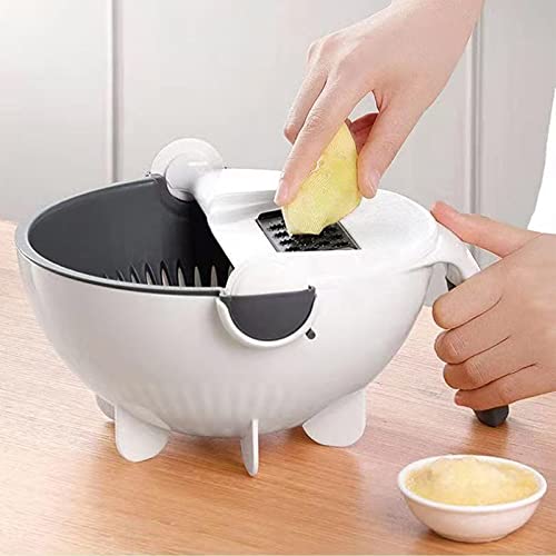 Affettatrice Verdure Con Cestello Scarico Tagliaverdure Rotante Mandolina Grattugia Verdure Verdura Spiralizer Cutter Cucina Multiuso Julienne Grattugia Per Frutta, Pomodori, Cipolle, Patate, Carote
