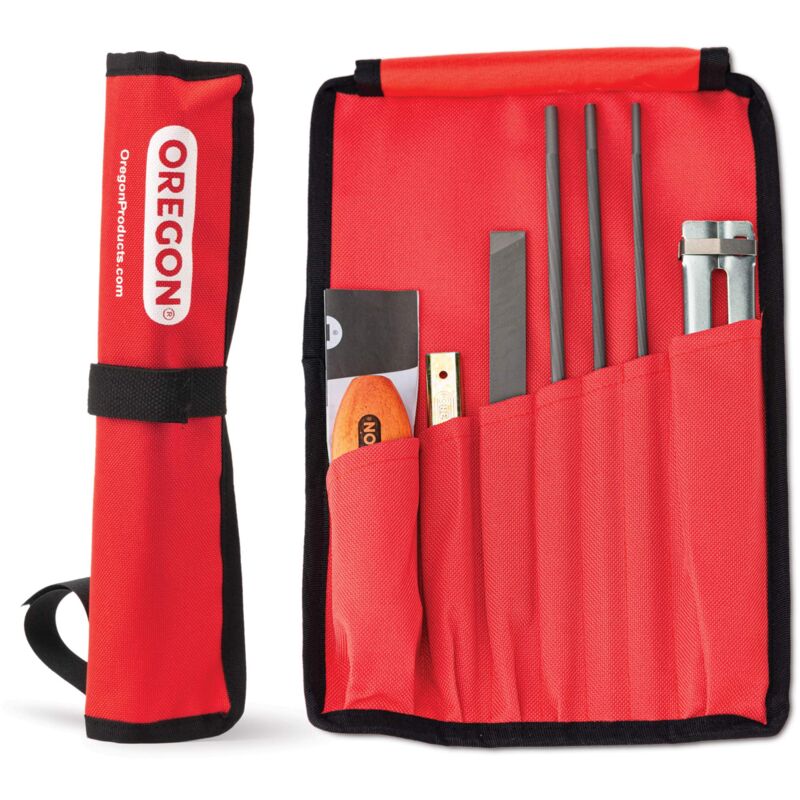 Affila la tua motosega dovunque tu sia con il kit di affilatura Oregon. Questa opzione portatile è realizzata con materiali di qualità, che assicurano ottime prestazioni in un'unica soluzione conveniente. Contiene tutti gli strumenti e le lime necessarie per affilare le nostre catene per motoseghe manuali con passo basso da 3/8, passo 0.325, passo standard 3/8 e passo 0.404, indipendentemente dalla sequenza di taglio . Include: 1 x lima tonda da 5/32 pollici (4,0 mm), 1 x lima tonda da 3/16 di pollice (4,8 mm), 1 x lima tonda da 5/32 pollici (5,5 mm), 1 x lima piatta da 6 pollici, 1 x guida per lima, 1 x manico per lima universale e 1 x foglio di istruzioni. L'astuccio presenta una semplice organizzazione degli scomparti che consente un rapido accesso agli strumenti di cui hai bisogno grazie alle tasche interne e alla chiusura a strappo. Una volta utilizzato è facile da arrotolare e riporre.