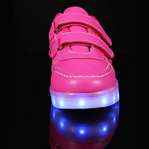 AFFINEST Bambini Scarpe 7 Colori LED Scarpe Sneaker Carica USB Lampeggiante Moda Sneakers con Telecomando?Rosa?28