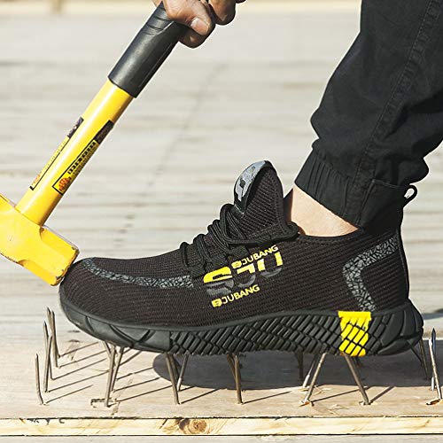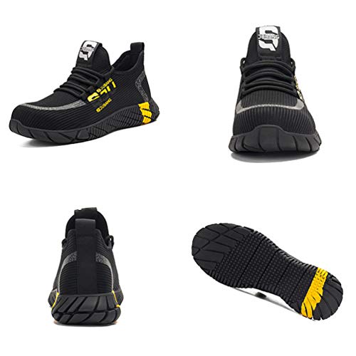 AFFINEST Scarpe da lavoro S3, da uomo, sportive, traspiranti, leggere, antiscivolo, con punta in acciaio, (nero/giallo), 43 EU