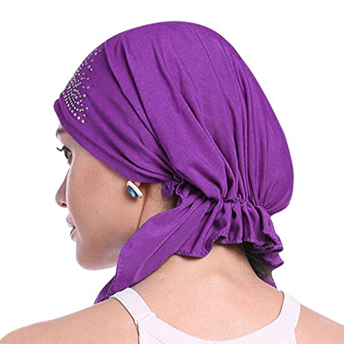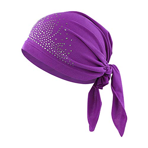 Afinder Chic Musulmano turbante con strass traspirante Hijab perdita di capelli Beanie bandane Viola M