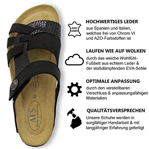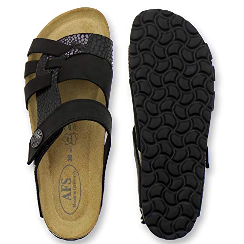 AFS-Schuhe 2120 Ciabatte da donna in pelle con chiusura in velcro, comode pantofole da donna con plantare, Made in Germany, marmo nero., 37 EU