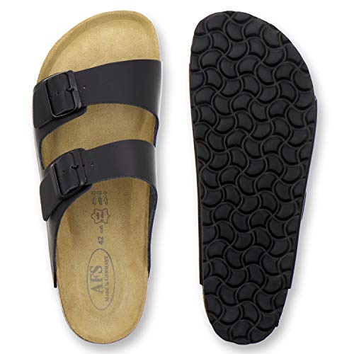 AFS-Schuhe - Comode ciabatte da uomo, 3100, in pelle, da casa e da lavoro, prodotte in Germania, Nero (Pelle nera liscia.), 45 EU