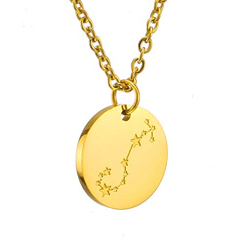 AFSTALR Collana con segno zodiacale oro e argento, per donna, collana di compleanno (design double face), Placcato oro 18 carati.,