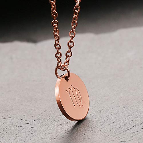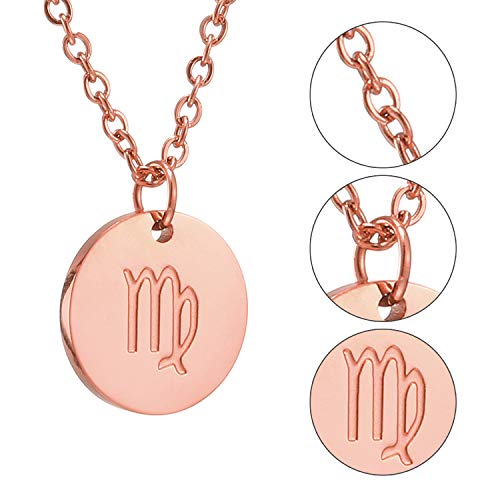 AFSTALR Collana con segno zodiacale oro e argento, per donna, collana di compleanno (design double face), Placcatura in oro rosa da 25 carati,