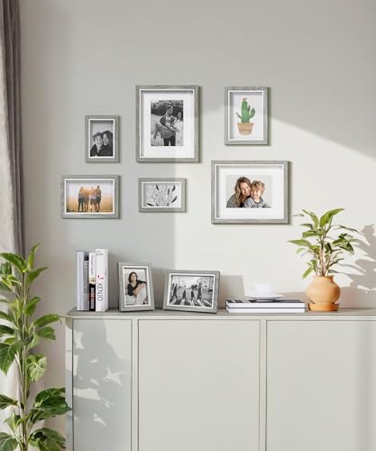 Afuly Cornice Foto 20x25 con 13x18 Passepartout Grigia Cornice Portafoto in Legno con Bordo Bianco per Parete o Scrivania Moderna Shabby Regalo set di 2