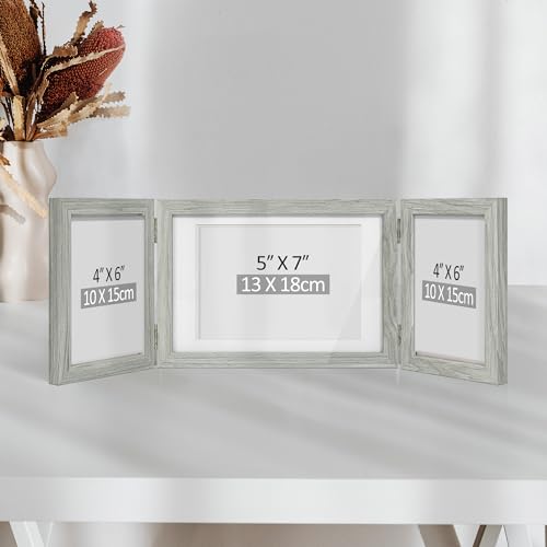 Afuly Cornice Foto Collage 3 Foto per 10x15 cm e 13x18 cm Portafoto Multiplo Rustico Grigio Legno