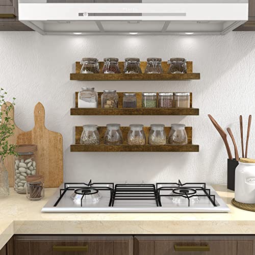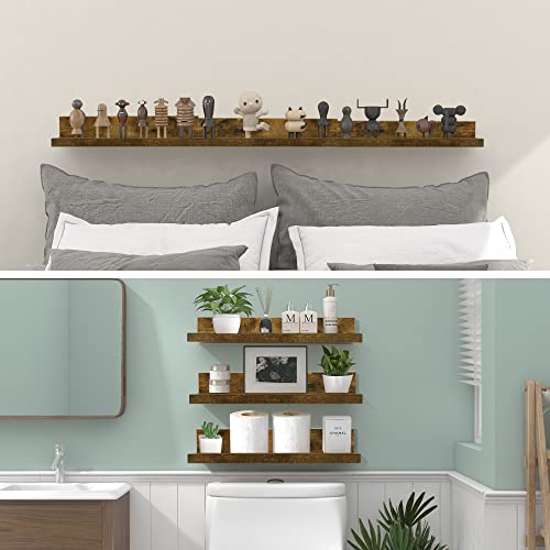 Afuly Mensole da Muro Legno Vintage Marrone Design Mensola porta Quadri per Cornici e Libri Cameretta Bagno Cucina 40x11x5/6/6.7 cm, Set di 3