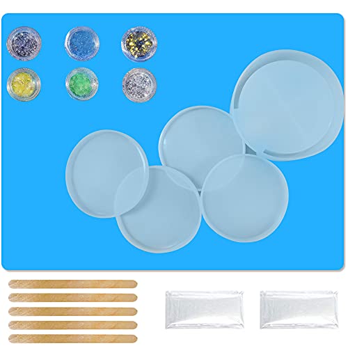 Afunta, set di 22 stampi per sottobicchiere in resina, set di stampi rotondi con guarnizione in silicone, per tazze, fai da te, per decorazioni per la casa