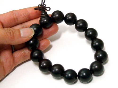 Agathe Creation - Bracciale con rosario buddista, perline in legno di ebano, diametro 14 mm, perline non scolpite, nodo del felicità, Buddha, colore: nero