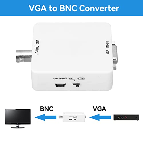 Agatige Convertitore da VGA a BNC, Adattatore da Video a VGA per Fotocamera PC TV, convertitore da BNC a VGA, convertitore per Monitor del Computer per Lettore Dvd DVR