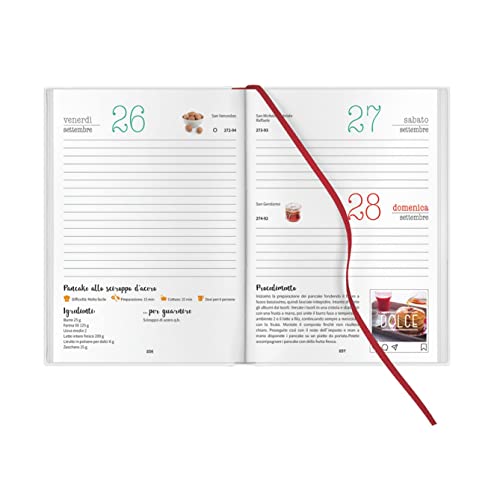 16 pagine iniziali a quattro colori con ricette. Riepilogo conto cassa mensile, segni zodiacali, rubrica telefonica, frasi, citazioni, ricorrenze.