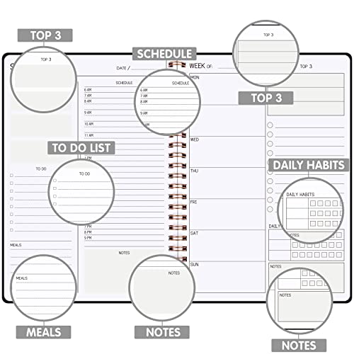 Organizzazione perfetta: è difficile rimanere organizzati per la vita quotidiana? Il nostro planner settimanale e quotidiano per fare dispone di spazio per la lista quotidiana delle cose da fare, le 3 attività, l'agenda dei pasti, il monitoraggio dell'acqua, le note, gli orari, ti porta a rimanere organizzato e aumenta la produttività