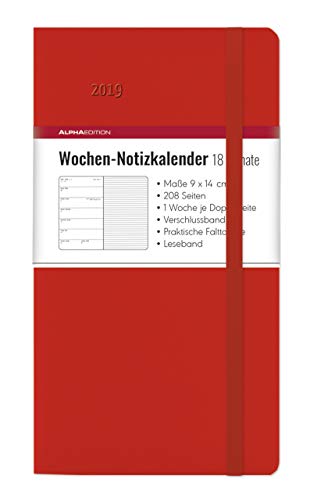 Agenda settimanale 18 mesi, 2018/2019, Copertina rigida, Rosso 9x14 cm
