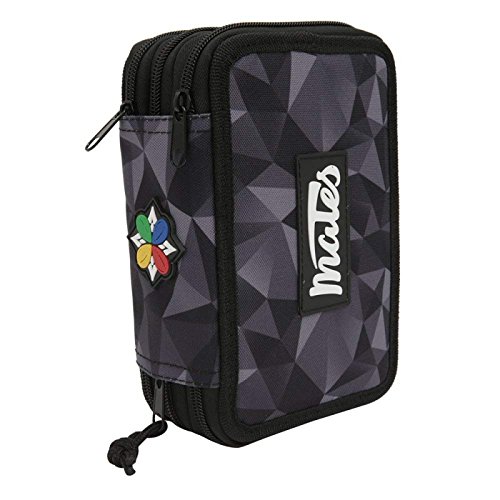 Nuova collezione scuola MATES 2019, Astuccio triplo, 3 scomparti e 3 zip, Pratico e facile da richiudere, Contenuto: 18 matite colorate GIOTTO, 18 pennarelli GIOTTO, 1 penna a sfera blu, 1 penna a sfera rossa, 1 matita, 1 gomma, 1 righello, 1 temperino, 1 paio di forbici, 1 normografo, Colore: nero, Dettagli curati e grafiche originali MATES