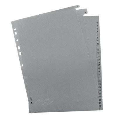 Separatori realizzati in polipropilene con foratura universale, separatori in PPL, foratura universale, separatore: numerico da 1 al 31, colore: grigio, dimensione: 21 x 29,7 (A4)