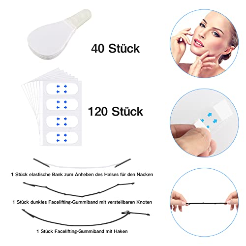 Contenuto della confezione: ci sono 120 adesivi a V, 40 bastoncini per il restyling, con 3 corde di sollevamento, la quantità è sufficiente per soddisfare le vostre esigenze, facile da usare, facile da indossare e l'effetto lifting può durare tutto il giorno. Rendi tutta la tua persona più attraente e spirituale.