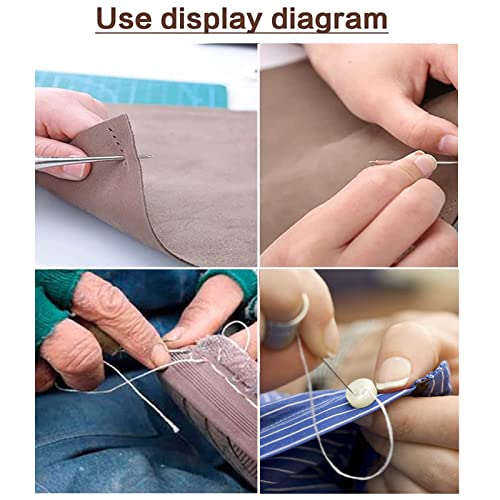 【Contenuto della confezione】 Il set di aghi per puntura comprende 9 aghi per occhi grandi, 7 aghi per cucire a mano in pelle, 1 punteruolo con manico in legno e 1 forbice, in grado di soddisfare le tue esigenze.