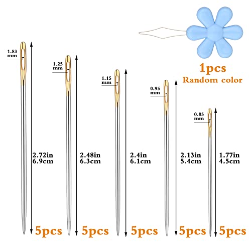 Aghi per Cucire a Mano, 25 Pezzi Aghi per Cucire a Occhiello Grande con Infila e Custodia, Kit Aghi per Cucire 5 Misure per Cucire A Mano, Aghi per Cucire Filati, Usati per Cucire A Mano e Ricamo